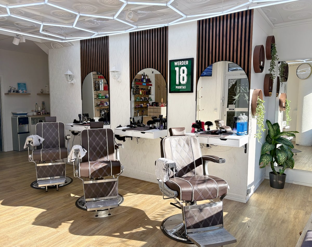 Willkommen bei F & A Friseursalon, einem renommierten Friseursalon im Herzen von Bremen. Geführt von einem professionellen Team von drei Mitarbeitern, hat der Salon mit der Fokussierung auf Bartpflege einen ganz besonderen Dienstleistungssektor erschlossen. Im modern, urban und hell gestalteten Salonambiente empfangen unsere Experten Sie in einer freundlichen und angenehmen Atmosphäre, die dazu einlädt, den Alltagsstress zu vergessen. Die hervorragende Bewertung von 5,0 Sternen, resultierend aus über 40 zufriedenen Kundenstimmen, spricht für sich. Das Geheimnis unseres Erfolgs liegt in der Kombination aus handwerklichem Können, exzellentem Kundenservice und der warmen Atmosphäre unseres Salons. Unsere Bestandskunden schätzen diese konstant hohe Qualität und auch Neukunden sind von ihrem ersten Besuch an begeistert. Lassen Sie sich von unseren erfahrenen Friseuren in der Violenstraße 45 beraten und genießen Sie unseren erstklassigen Service. Der F & A Friseursalon - Wir freuen uns auf Ihren Besuch.